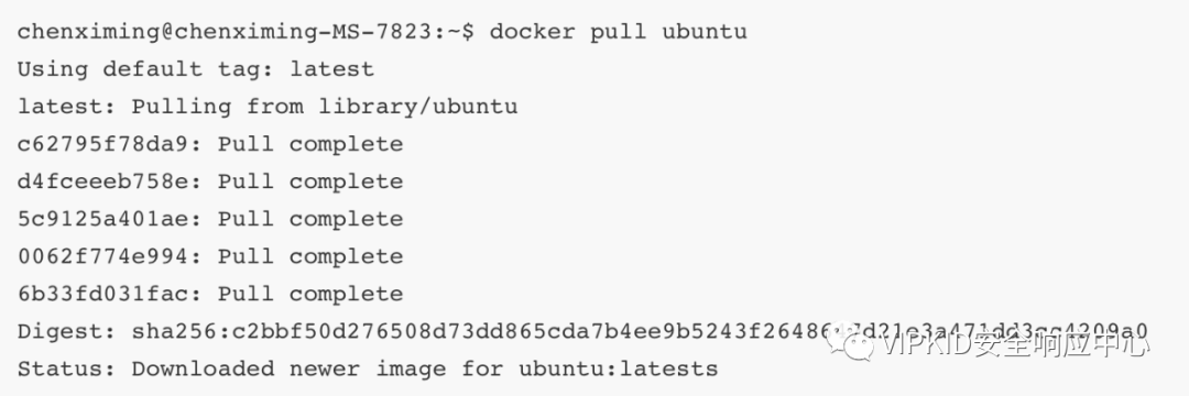 可以发现一个ubuntu镜像存在多个sha256的digestid,用来标示不同层级的layerid(涂层),我们可以通过docker inspect ubuntu查看每个镜像层级的digest sha256的值: