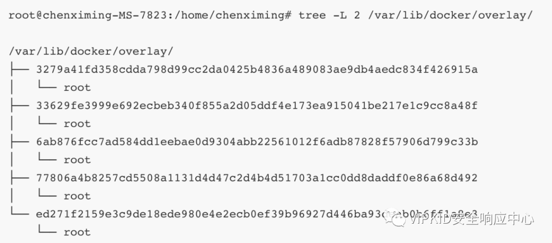 通过以上技术手段,那我们能够获取一个镜像(image)所有layerid对应的overlay2存储驱动的层级,这个层级中diff目录包含了实际容器层使用的文件系统。