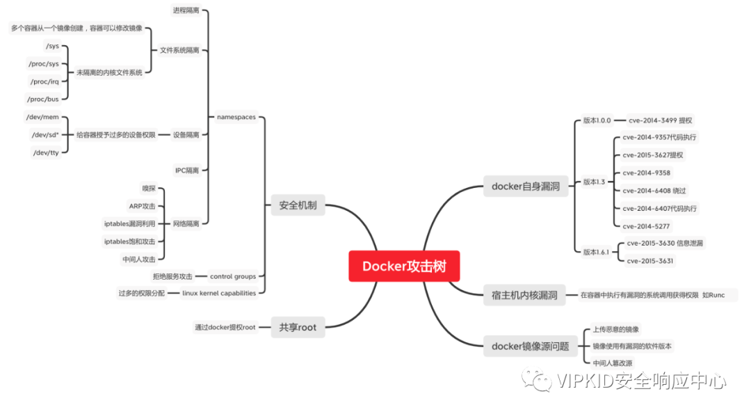 namespaces导致的:容器之间的局域网攻击、共享root、未隔离的文件系统、默认放通所有cgroup导致的:DDoS攻击耗尽资源