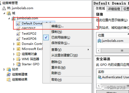 编辑默认组策略: