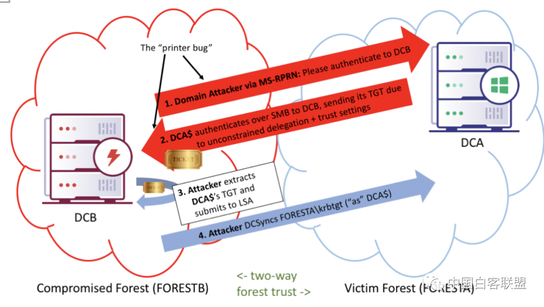 在KRB_TGS_REP中,TGS会返回给Client一张票据ST,而ST是由Client请求的Server端密码进行加密的。当Kerberos协议设置票据为RC4方式加密时,我们就可以通过爆破在Client端获取的票据ST,从而获得Server端的密码。