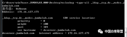 nslookup -type=all _ldap._tcp.dc._msdcs.jumbolab.com
